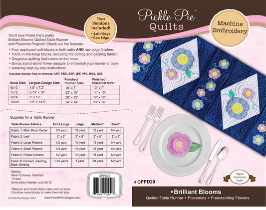 Brilliant Blooms Quilt Table Runner In-the-Hoop Embroidery Design - Pickle Pie Designs