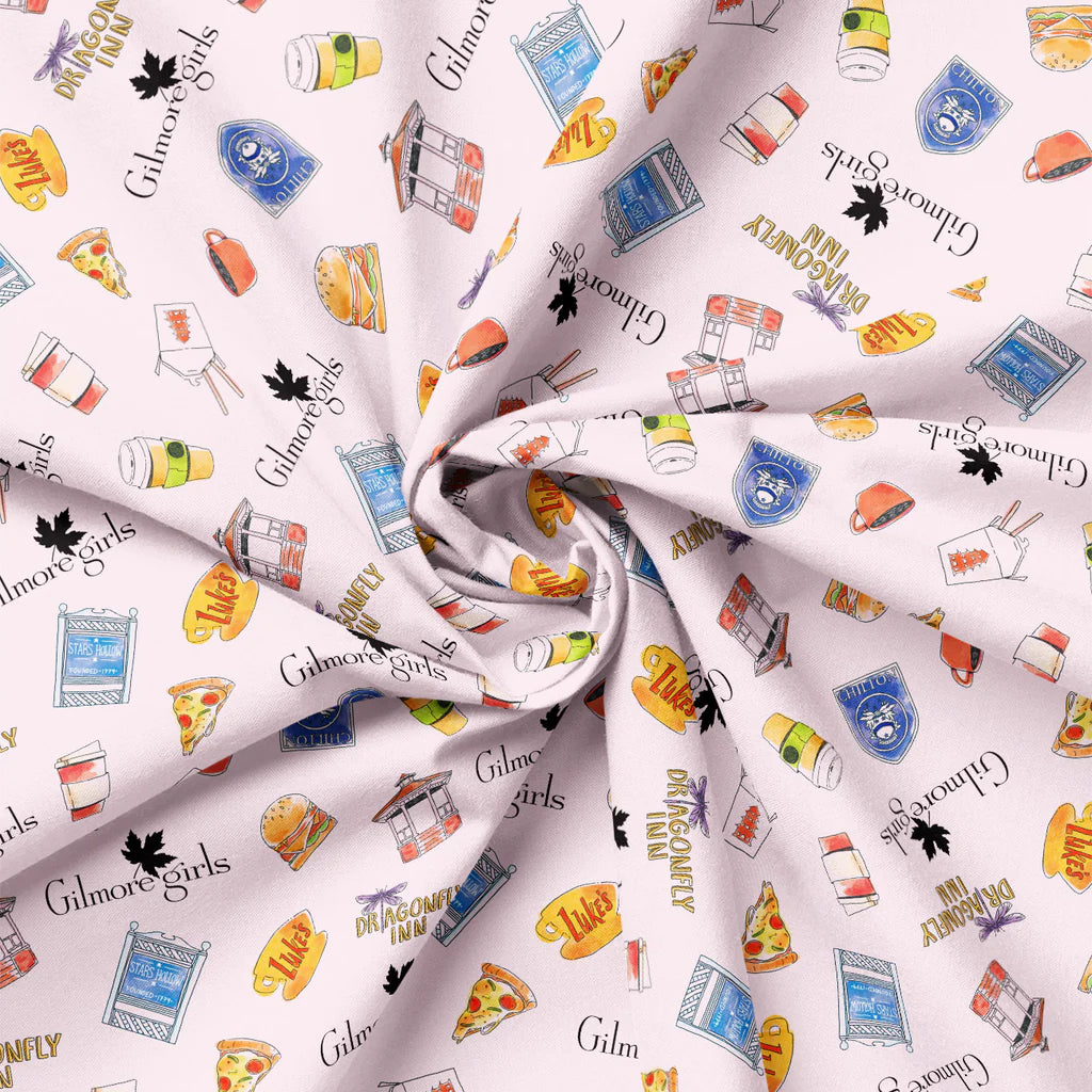 Return to Stars Hollow with our second officially licensed Gilmore Girls quilting cotton fabric collection! Featuring five prints with soft watercolor imagery and the cozy charm of your favorite feel-good comfort show, this collection is perfect for celebrating love, laughter, and coffee-fueled moments