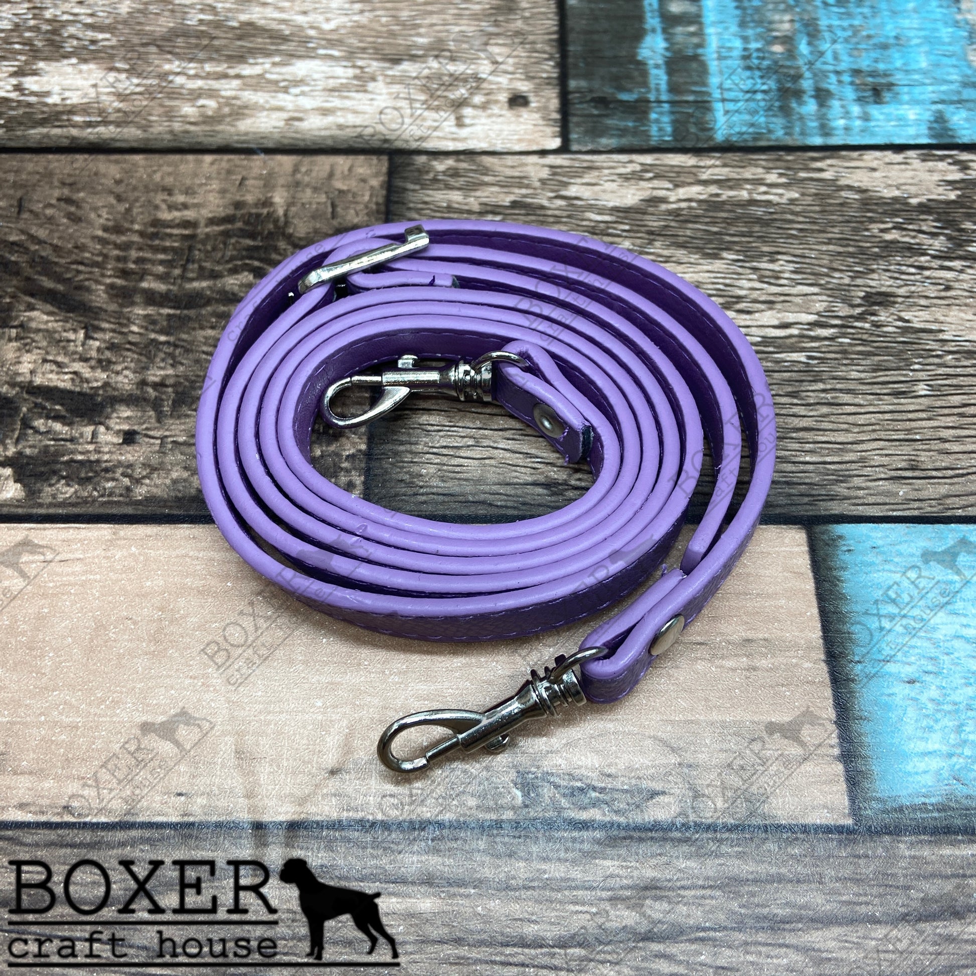 Adjustable faux leather strap, includes five holes for adjusting the length of each strap from 43 inches all the way to 47.5 inches.
