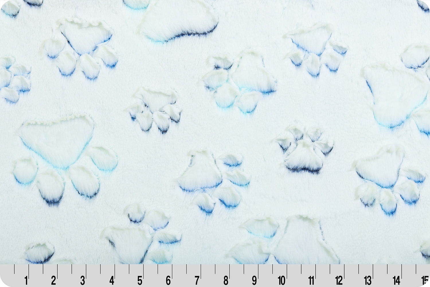 Description:  We know how irresistible minky fabric is for humans, but if you've ever left a minky throw blanket laying around, you know how much pets love it, too. We're all for sharing, but we've created this paw-inspired Luxe Cuddle® Prism Paws minky fabric design so you don't have to anymore. It's like our popular Luxe Cuddle® Pawsome collection, but this time the fabric is back-printed and frosted, and the paws are embossed directly into the fabric! We'd recommend making a self-binding throw blanket to line a kennel, or try making a minky fabric dog bed yourself!