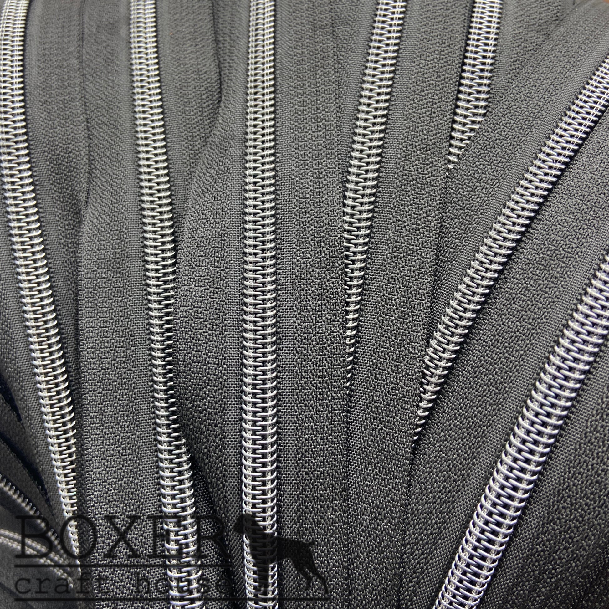 Nylon #5 Zipper - Gunmetal Coil Black Tape 3 Yard