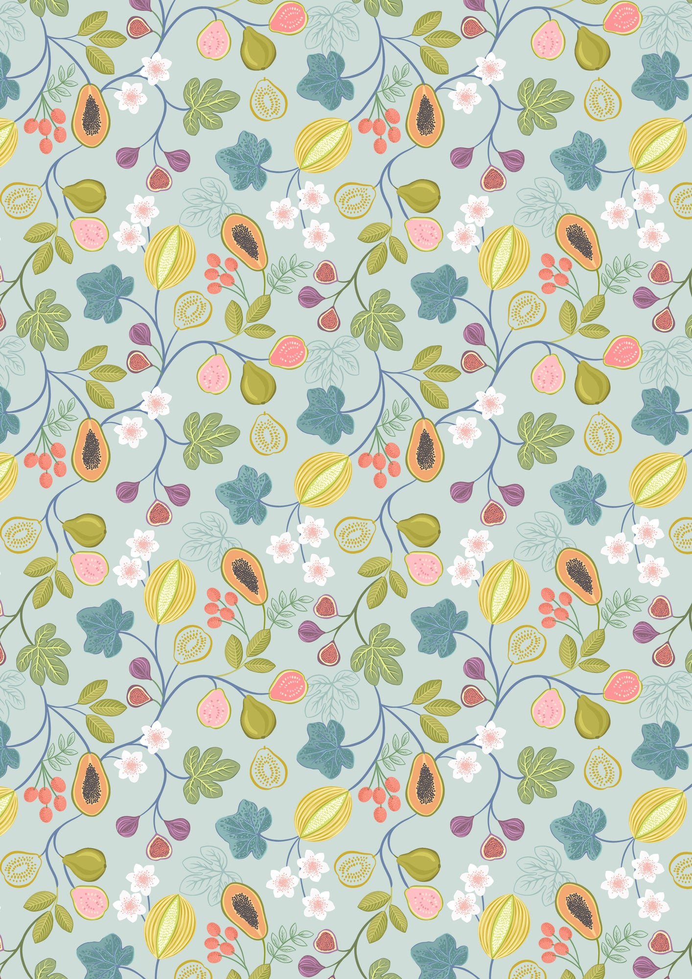 That sunshiny place might look a lot like the fabrics in this collection! Colourful birds, luscious fruits and palm trees swaying in a gentle breeze. The colours remind us of travels to tropical destinations and dreams of an easy going, island life.