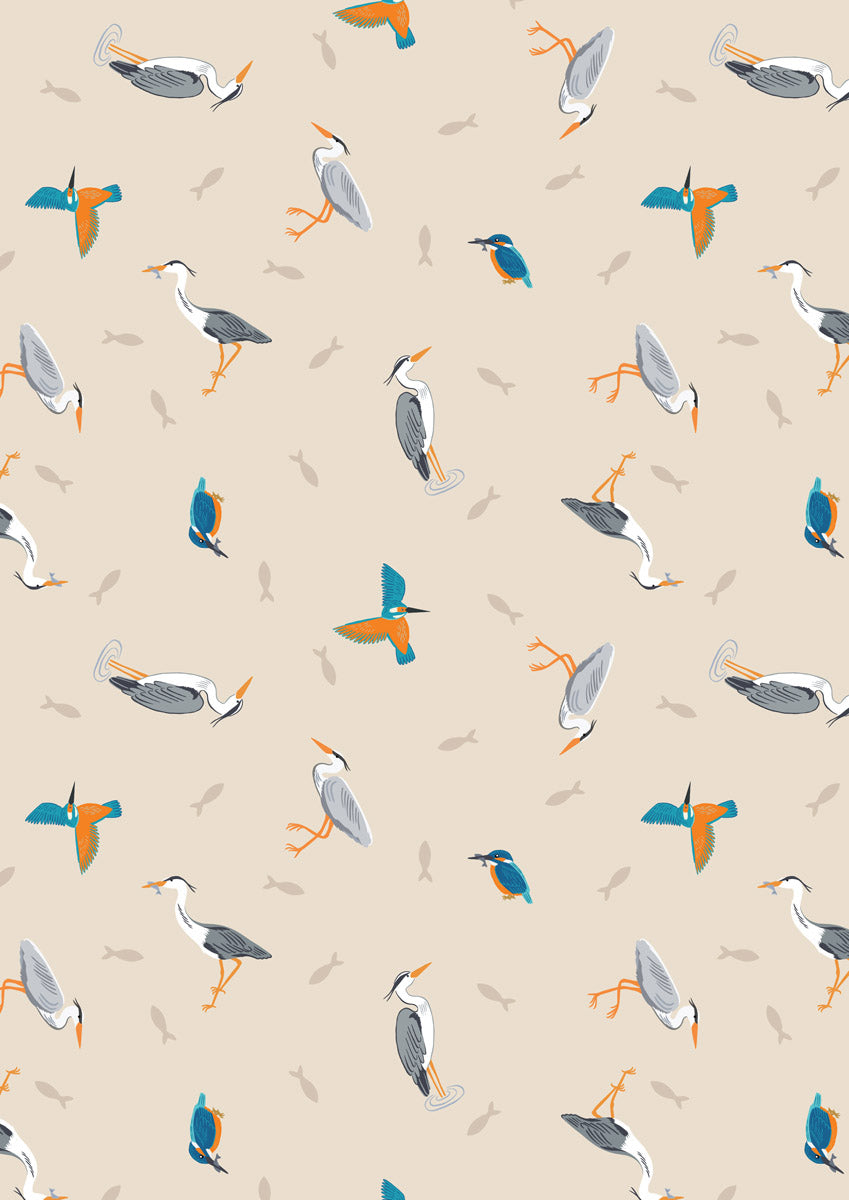 Small Things Rivers and Creeks - Herons and Kingfisher Cream