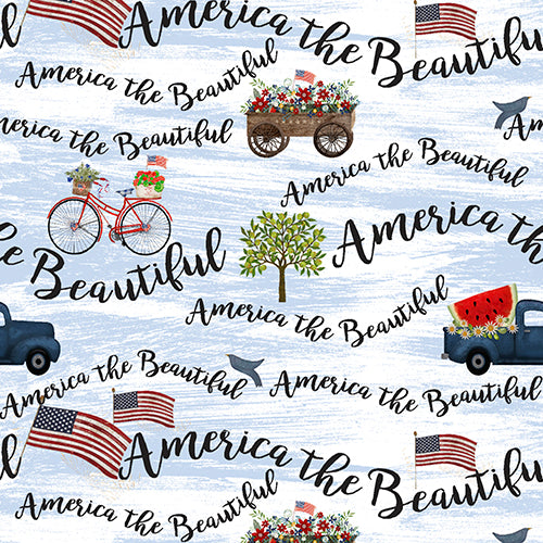 Item Description: Life, Liberty, and the Joy of another fantastic fabric collection by Beth Albert for 3 Wishes fabric. “Sweet Land of Liberty” is a patriotic-themed, 8-piece collection. Within this Cotton offering, you will find Beth Albert’s signature rustic flair along with her incredible detail in recreating an Americana small town setting. The collection focuses around a 36” x 42” pillow panel that features town buildings reminiscent of yesteryear. The panel “blocks” measure 15.5” x 15.5”. The 7 coordinating allovers include a broad array of designs in hues of navy and vibrant red. Designs include exploding fireworks, stars on distressed shiplap, summer fruits on a blue picnic check, a Patriotic ditsy floral, and an allover “patch” that ties the whole collection together.