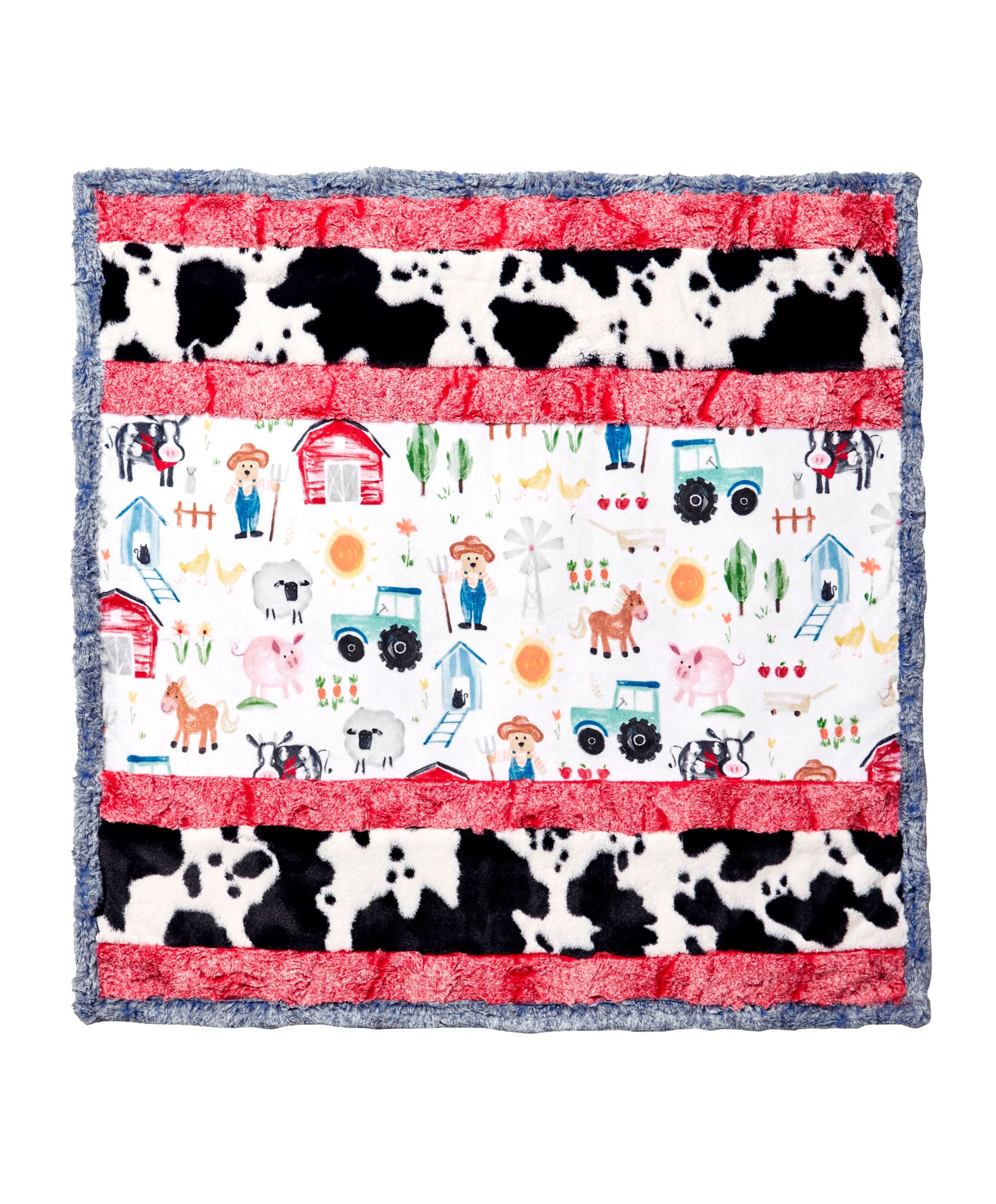 Mooooo-ve over and make room for one of our newest Cuddle® quilts, Deja-Moo! The kit includes our Farmer Ted Digital Cuddle® Multi, Luxe Cuddle® Cow Snow, Luxe Cuddle® Heather Peppermint, and Luxe Cuddle® Heather Stonewash fabrics.