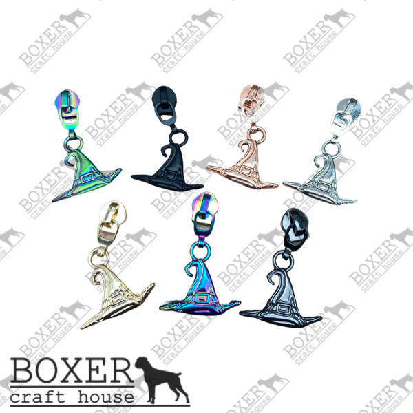 These zipper pulls are compatible with our #5 zipper tape. Witch Hat pulls are a BCH exclusive!